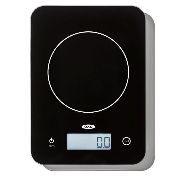 Achieving precise measurements whether cooking, baking or portioning out meals, just got easier with the OXO Good Grips 11 lb/5kg Everyday Glass Food Scale. We gave this digital glass scale a slim design so it takes up less work space, while still giving it all the bell and whistles needed to give you accurate results. The tare function makes zeroing out ingredients a snap, so you can feel confident as you work your way through a recipe. We also made sure to include easy universal unit conversion (oz/lb/g/kg/ml) and a large, backlit display for easy reading. Four AA batteries included.