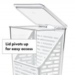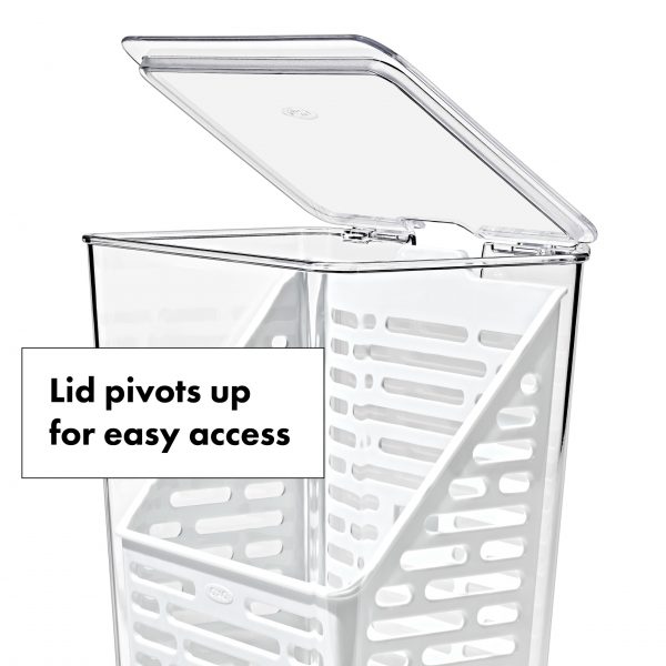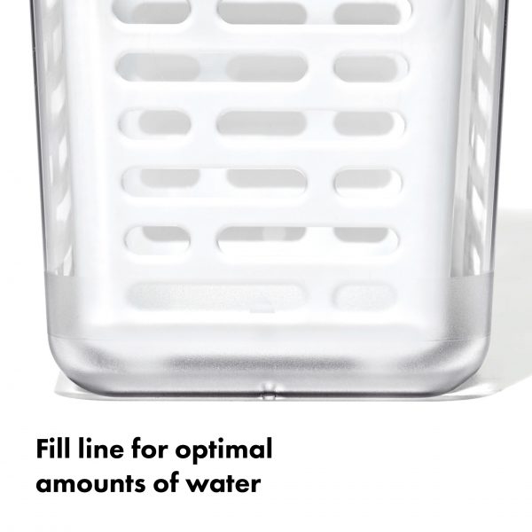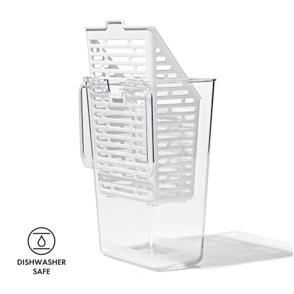 The OXO Produce Savers are fridge-friendly storage bins designed to keep your produce fresh longer. The Herb Keeper is designed to create the optimum environment for tender herbs like parsley, cilantro and dill while also accommodating hardy herbs like thyme and sage. It can even be used to keep asparagus, celery or spring onions hydrated. The convenient water fill line ensures optimal amount for hydrating herbs while the basket’s ventilation pattern allows ample airflow for freshness. When you’re ready to access your herbs, the hinged lid opens easily and the removable basket is designed to hook and hang. The narrow design fits neatly on refrigerator shelves or doors. This BPA-free Bin is dishwasher safe and coordinates with other OXO Produce Savers for modular, customizable organization.
