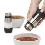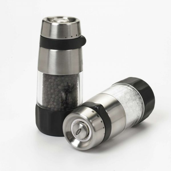 The Salt & Pepper Grinders are easily adjustable and rest flat when upside down for easy refilling. The non-corrosive ceramic grinders won’t absorb flavors or odors, and are positioned at the top so they won’t leave a mess on the table. Sold filled with sea salt and black peppercorns.