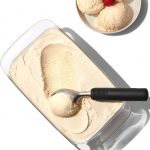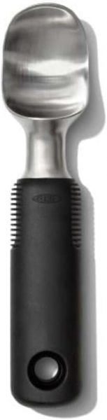 you want to dig in right away. The curved shape of the OXO Good Grips Solid Stainless Steel Ice Cream Scoop lets you glide through even hard ice cream. It is nicely weighted and has a comfortable, non-slip grip, which means you can scoop dish after dish with ease. The flat edges fit into every nook and cranny of your pint, so you don’t waste a single bite. The solid stainless steel Scoop is designed to last without pitting, discoloring or chipping. Dishwasher safe.