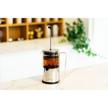 Simply pour your favourite blend into the chamber, pour in boiling water and wait for the drink to reach the desired brewing level. When the plunger is pressed, the strainer will separate the grounds/dryness from the rest, giving you the opportunity to pour a clear drink.
