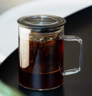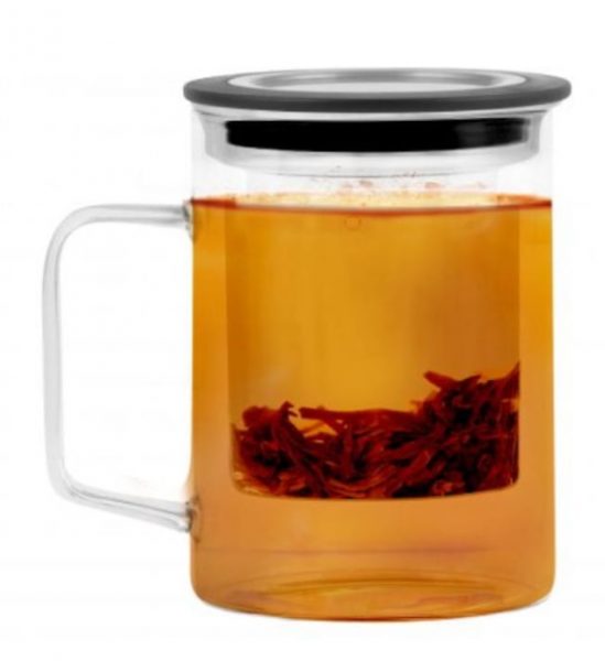 It features a specially contoured lid made of stainless steel and black plastic. Steam and pressure escape through a hole in the brewing unit and lid. The optimal capacity allows you to enjoy a generous serving of hot, aromatic tea, while the wide, convenient handle ensures comfortable tasting. Transparent glass walls allow you to monitor the brewing process and control the intensity of the tea. The simple, modern design of the handmade Diva infuser, along with the highest-quality materials (borosilicate glass and stainless steel), are safe for health and do not come into contact with the contents or affect its taste, are among the advantages of this product. Diva combines functionality with striking design; it is the perfect setting for celebrating the daily process of drinking tea, transforming routine into a pleasant ritual.
