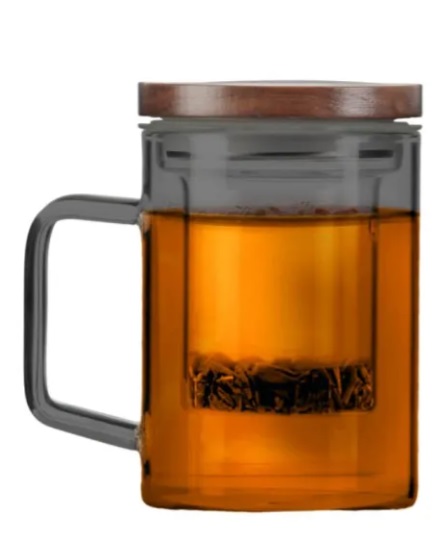 An elegant and practical glass with an infuser inside, into which loose-leaf or granulated tea is poured. The infuser has special notches on the bottom that allow the infusion to circulate freely. It traps the tea grounds inside, leaving the tea clear in the glass.