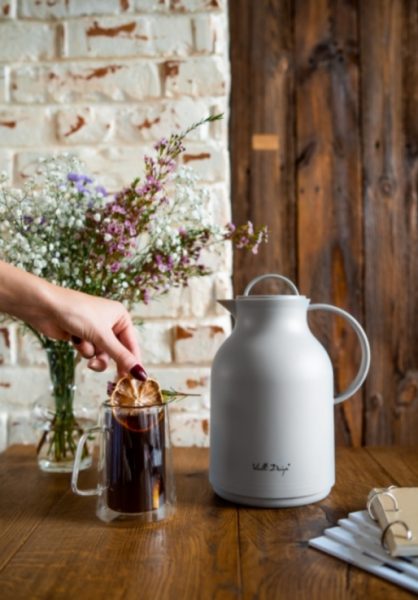 This product is perfect for both hot tea and cool juice on hot days. Thanks to the use of top-quality materials , the outer wall of the AMO thermos stays cool when filled with hot beverages and does not condense when filled with cold beverages. The sturdy handle and well-shaped spout ensure comfortable pouring. The thermos is lightweight and easy to handle.