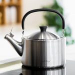 18/10 stainless steel provides an attractive, bright color and resistance to scratches, mechanical damage, and chemical damage. The whistling kettle can also withstand high temperatures. The 3-layer, 0.3 cm thick base heats up quickly, distributes heat evenly, and maintains the temperature for a long time. This allows you to quickly boil water for tea or coffee and pour a cup even after just a few minutes. Thick walls additionally contain heat. The solid construction and well-thought-out design make the kettle a durable tool that will last in your kitchen for a long time – even with heavy use.