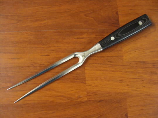 The Yaxell Ran Plus Carving Fork gets a solid grip on roasts, poultry, and large vegetables such as baked potatoes and easily lifts corned beef from the pot to the carving board and holds it down firmly for careful slicing. Yaxell combines the best of advanced technology with the unsurpassed knowledge and expertise of traditional craftsmen. Yaxell continues to pursue new possibilities for kitchen in the new era, and to work on maintaining and improving manufacturing technologies to produce the highest quality products.